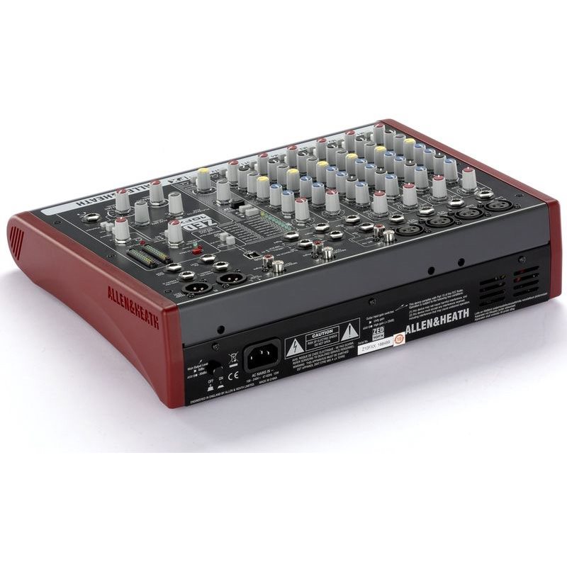 Allen Heath ZED-10 микшер: 4 микрофоннныхвхв. и 2 стерео, включая MP3 проигрыватели, раздельные выходы на стереозапись и стерео вход для воспроизведения с дополнительного внешнего источника (например CD), главные стерео выходы на разъемах XLR с инсертами, выход для подключения мониторных наушников и отдельный выход для мониторных акустических систем, 48 В фантомное питание для микрофонов, DI переключатели на входах, USB посыл и возврат для записи, воспроизведения и добавления эффектов с помощью компьютеров PC или Mac.